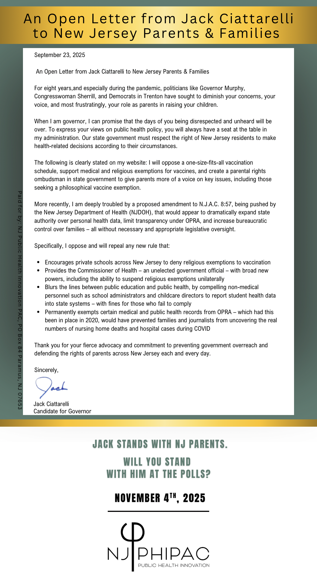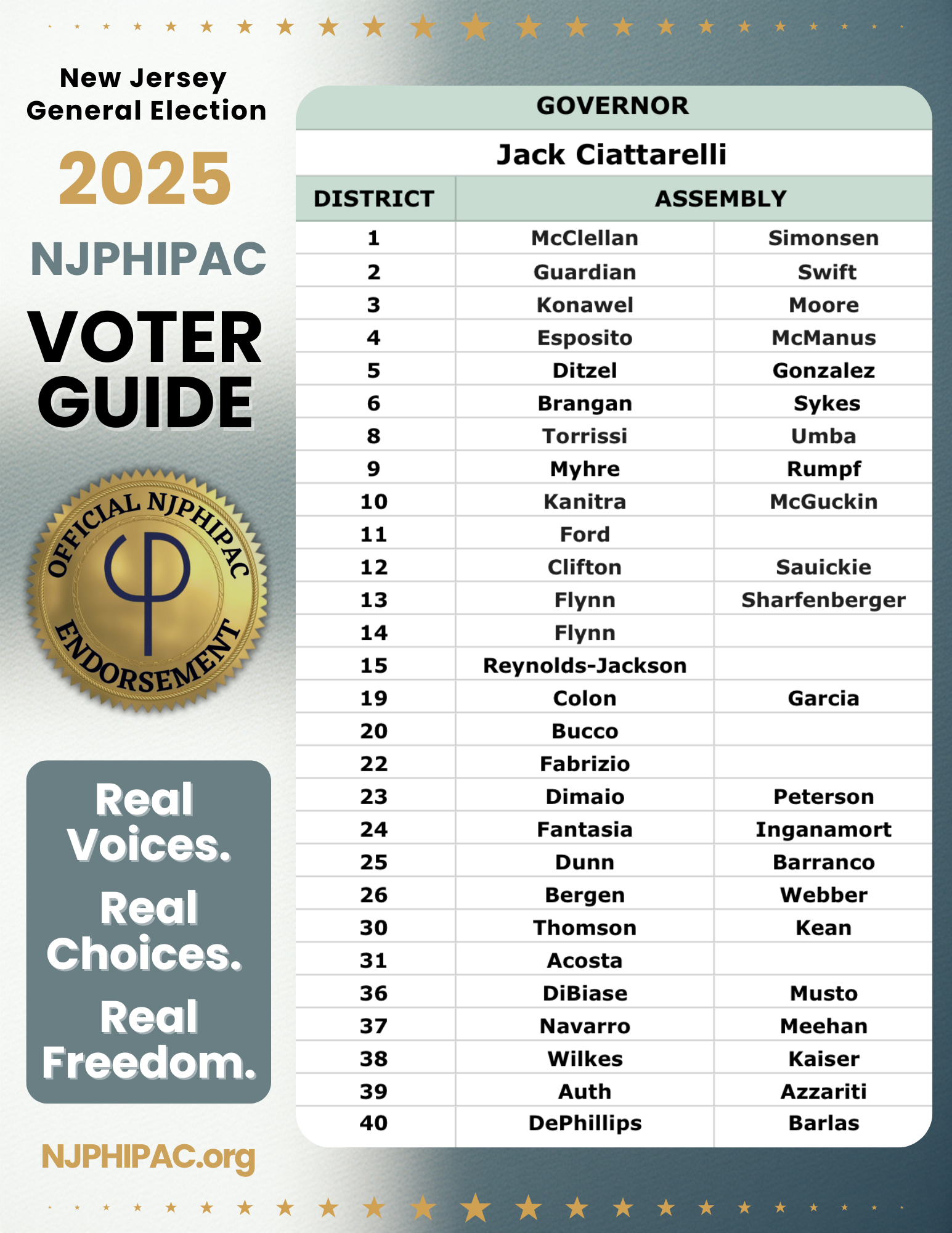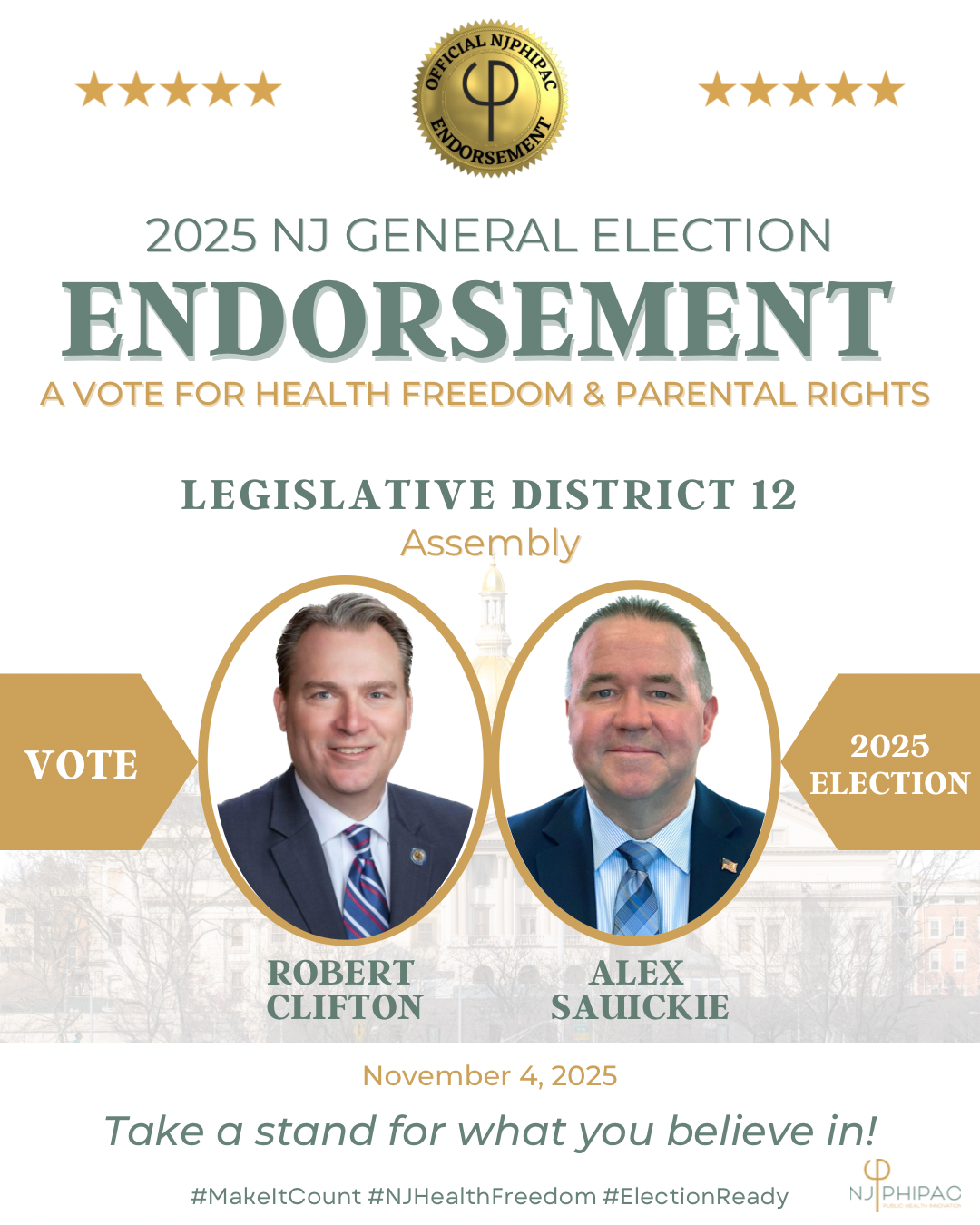 NJPHIPAC is pleased to announce our official endorsements for the upcoming Legislative General Election on November 4, 2025.