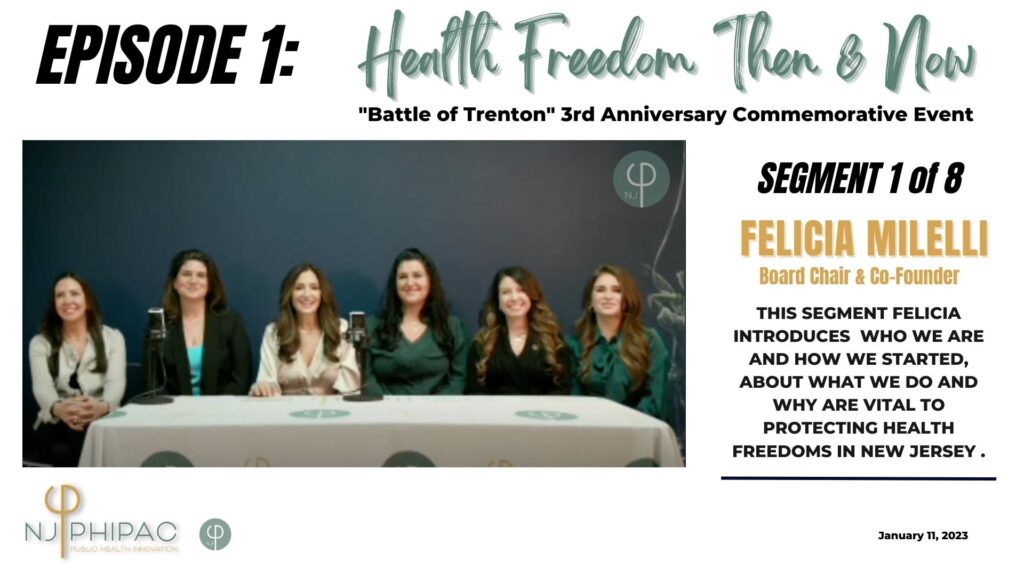 Segment 1 of 8: Felicia Milelli introduces WHO we are and HOW we started, about WHAT we do and WHY are vital to protecting health freedoms in New Jersey .